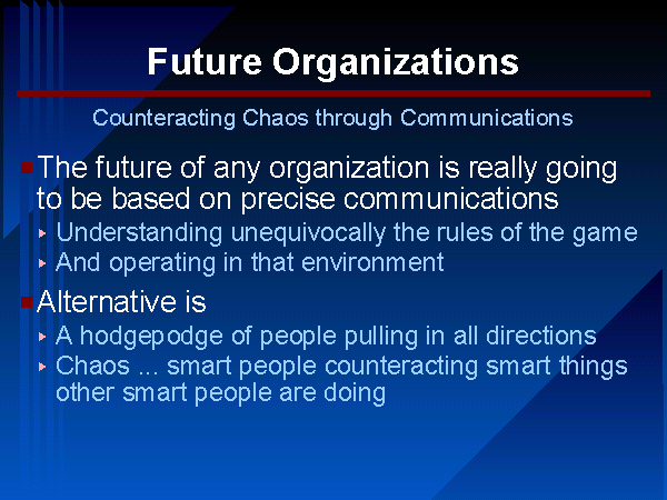 In terms of business transactions, "precise communications" means clear, complete, and accurate records that are securely preserved and readily available when and where neeed.
