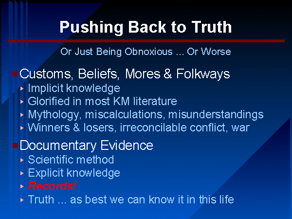 To the degree that they fail to recognize the importance of objective evidence documented in readily accessible records whose integrity is assured, the acolytes of tacit knowledge are tacit members of the Cult of TK.