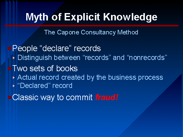 It is common knowledge -- tacitly as well as explicitly -- in the records management community that individuals who create records must be held accountable to "declare" them as records, so that they can be captured and managed in the corporate record-keeping system. However, that is just another of the outmoded fallacies of eras bygone.